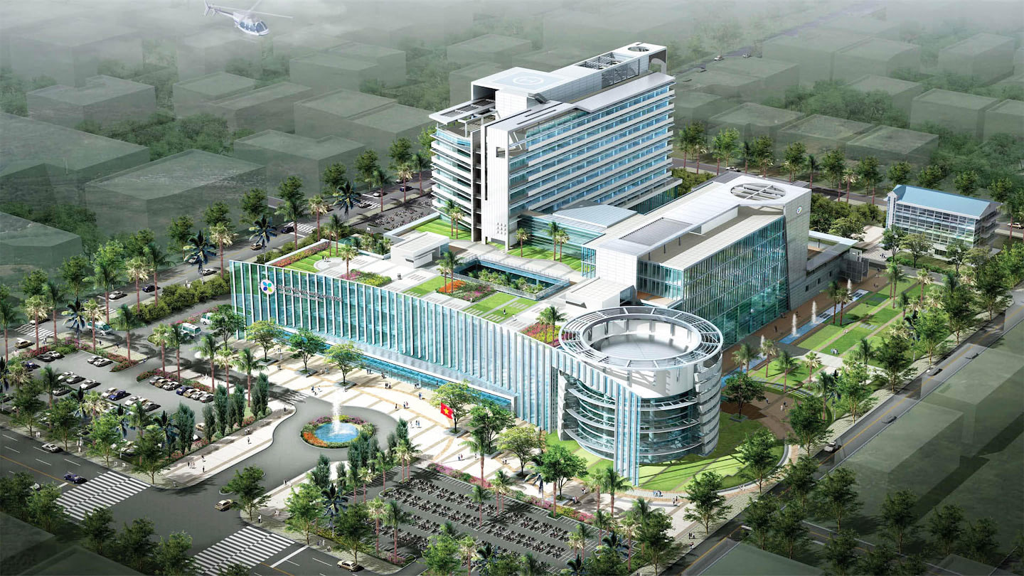 Bệnh viện mới quy mô 600 giường, cao 10 tầng, sân thượng có bãi đỗ trực thăng, diện tích sàn xây dựng 12.806m2 nằm trên mặt bằng rộng 4,6ha; hiện có 34 khoa phòng và các bộ phận chức năng với đầy đủ trang thiết bị hiện đại, công tác khám chữa bệnh quản lý bằng công nghệ thông tin.