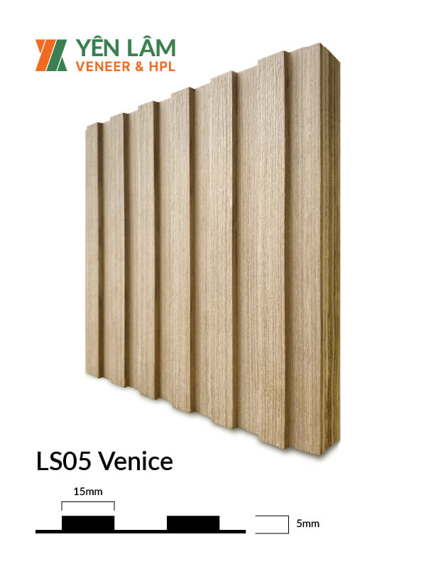 LS05 – Venice là lam sóng vuông, có các bước sóng lớn, dễ dàng ứng dụng trong các không gian nội thất. Bề mặt gỗ kỹ thuật mang lại cảm giác ấp áp, chân thật, thân thiện với sức khỏe người sử dụng.