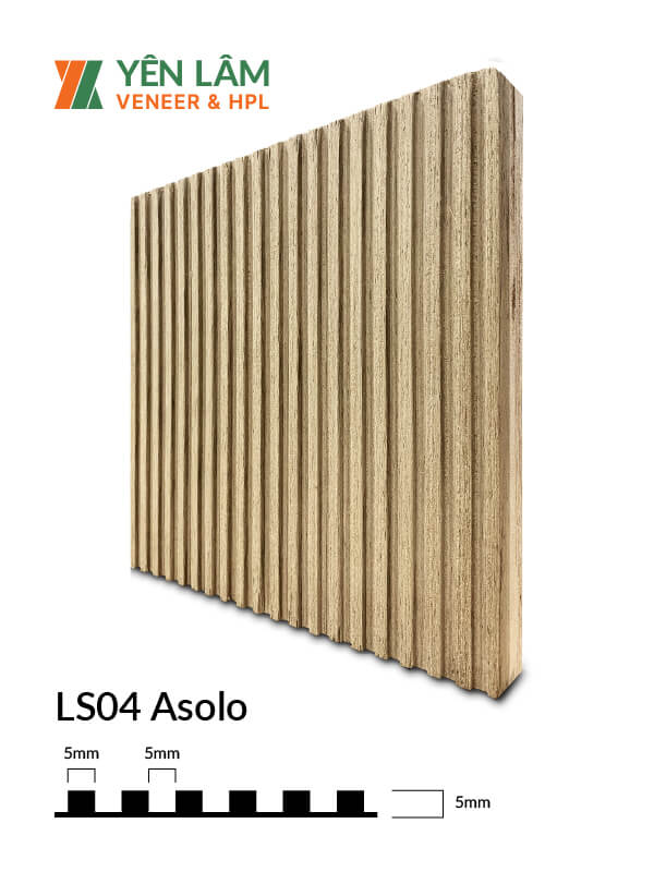 LS04 có hình dạng sóng vuông, khoảng cách giữa các lam sóng là 5mm, được làm từ chất liệu gỗ solid, với độ dày 7mm và 17mm. LS04 có thể được sử dụng linh hoạt trong nhiều hạng mục thiết kế như: ốp vách full trần, cửa, đồ dùng nội thất (bàn, ghế, giường tủ,…).